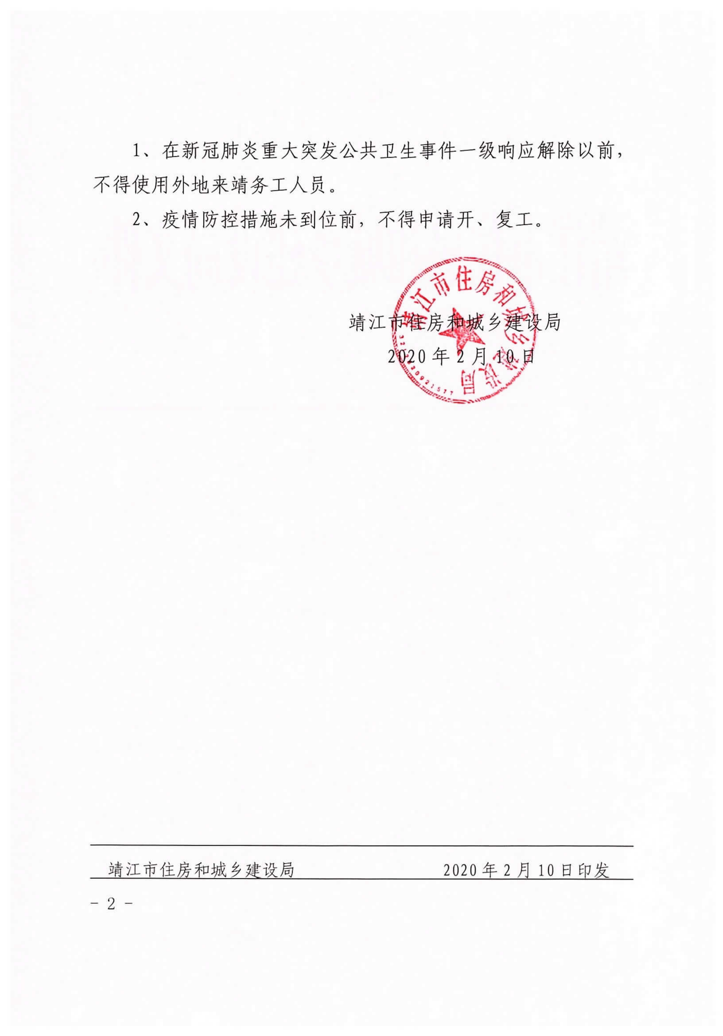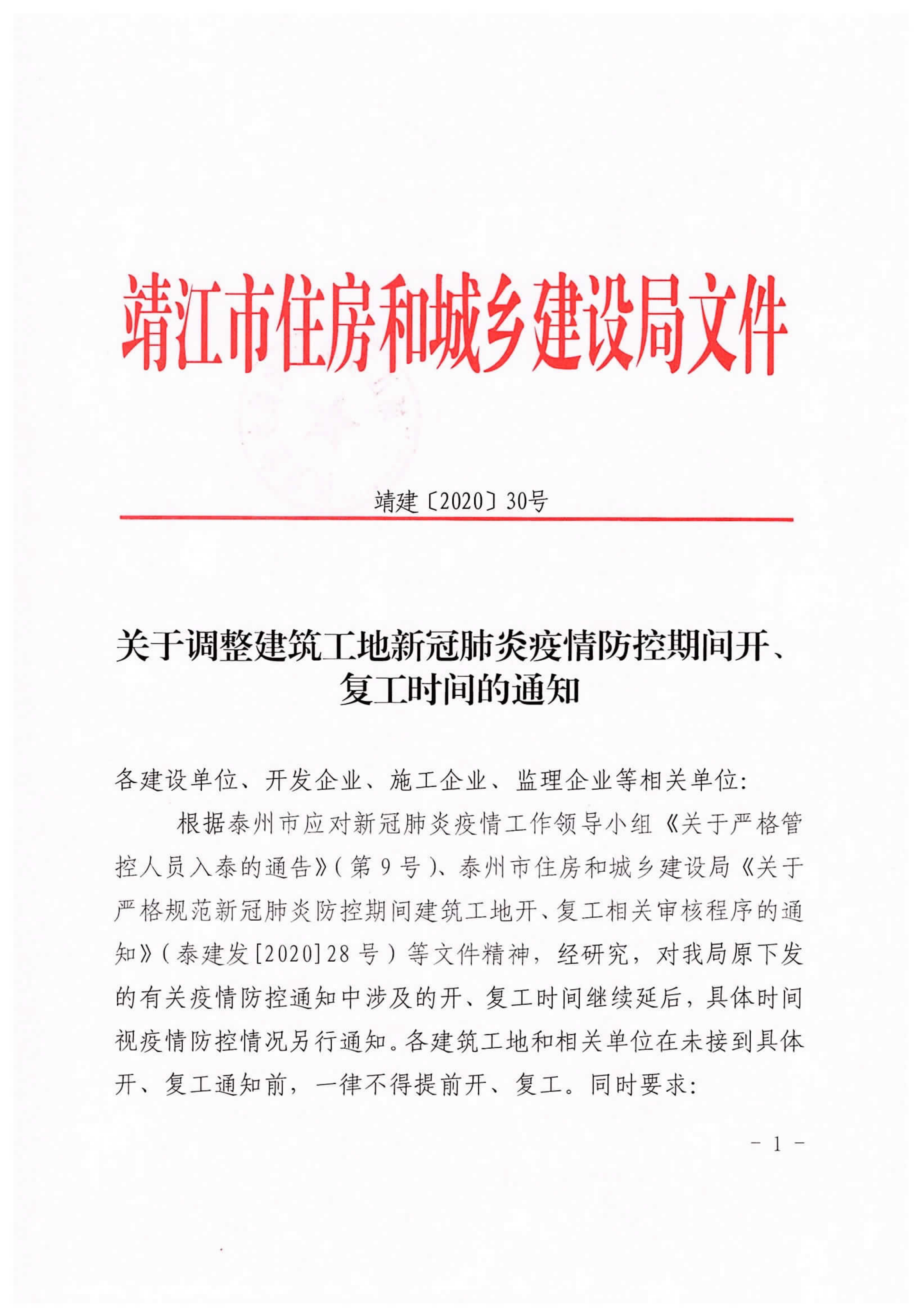 轉(zhuǎn):《關(guān)于調(diào)整建筑工地新冠肺炎疫情防控期間開(kāi)、復(fù)工時(shí)間的通知》(靖建【2020】30號(hào))