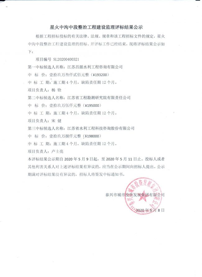 公司中標星火中溝中段整治工程建設監理